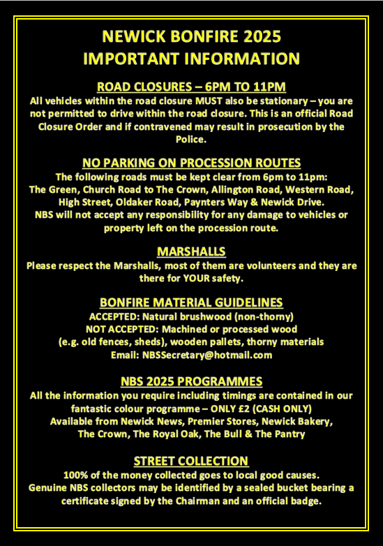 We fund raise all year round but we rely on membership and Vice-President revenue. The Village Green gives our night a unique atmosphere but is a public space and we are unable to charge admission fees, so we would like to encourage all residents of Newick and everyone that visits and enjoys the amazing spectacle that is NEWICK BONFIRE NIGHT to pay for their evening by becoming Vice Presidents or Full Members. For details see the Join Us page!