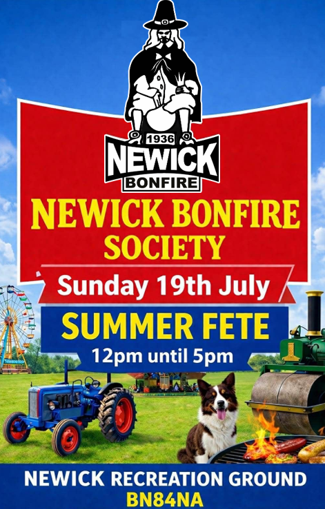 Sunday 19 July – Summer Fete – King George V Playing Field, Newick – 12 noon – 5pm